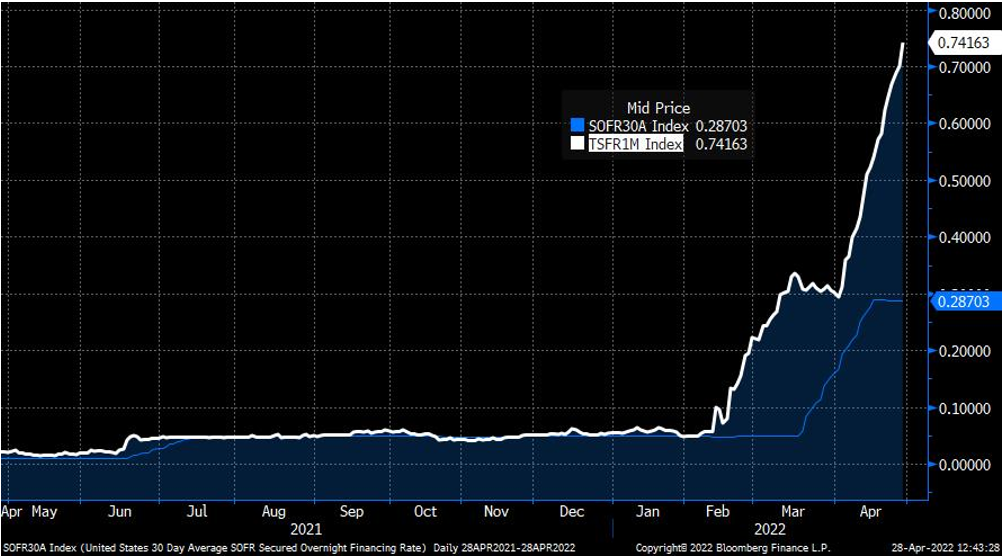 Exhibit 4: Forward- vs backward-looking 1-month SOFR