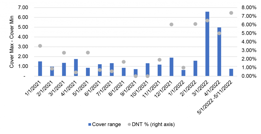 Note: DNT ratio is computed as the number of DNT bonds over number of posted securities in a month.