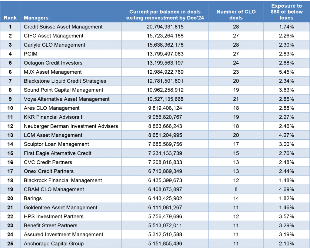 Exhibit 3: Managers with the largest balances leaving reinvestment by Dec 2024