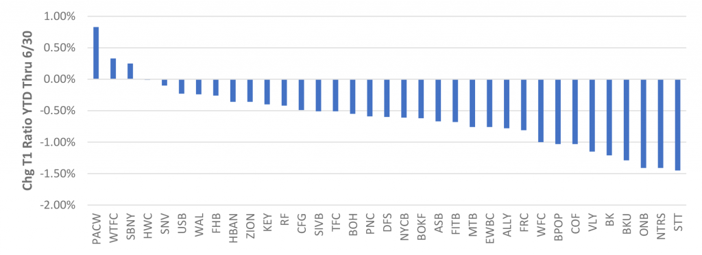 Exhibit 1: Change in Tier 1 capital ratio year-to-date through 22Q2