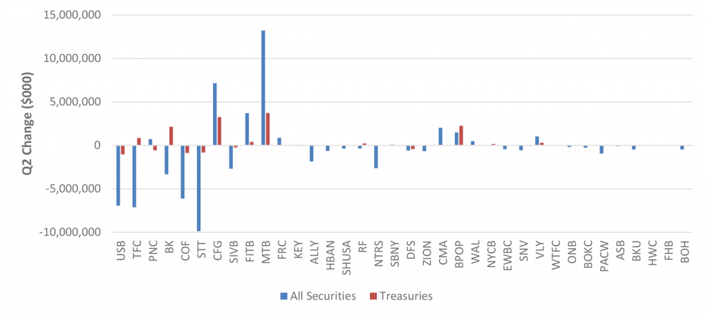Exhibit 5: Most U.S. Treasury positions increased in Q2, even with overall securities positions declining