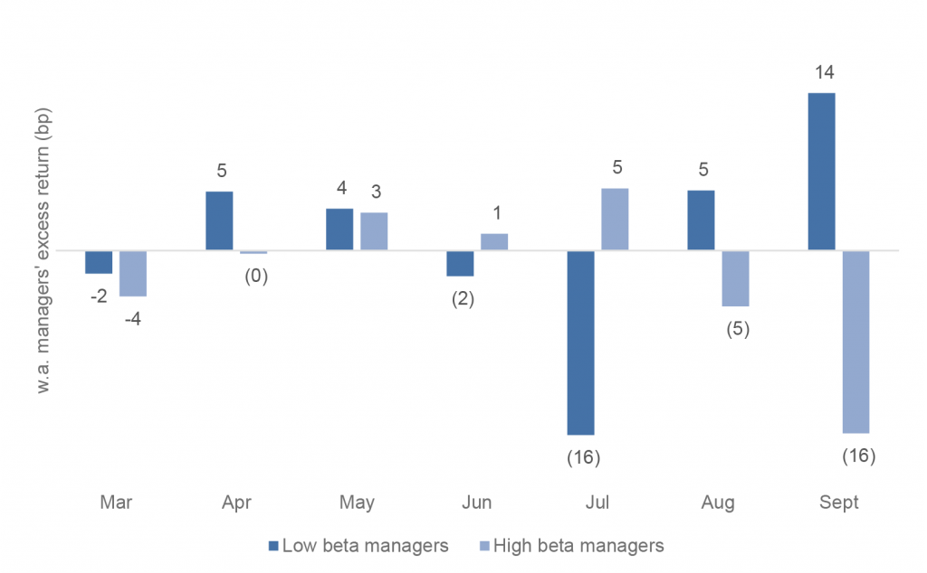 Low beta managers perform well through September