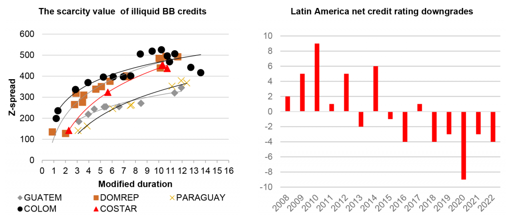 Exhibit 4: Costa Rica and Guatemala buck the trend of rating downgrades and offer scarcity value relative to liquid ‘BB’ credits