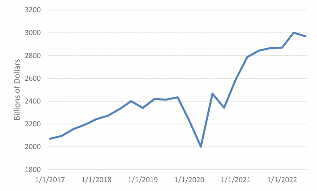 According to the Federal Reserve, the net worth of nonfinancial businesses, both corporate and noncorporate, surged in 2021 by over $6.5 trillion, or nearly 17%, in 2021 and advanced slightly further in the first half of 2022.