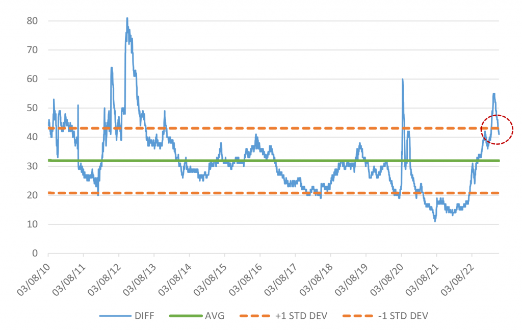 Exhibit 2. Historical spread pick to move into ‘BBB’ credit from ‘A’