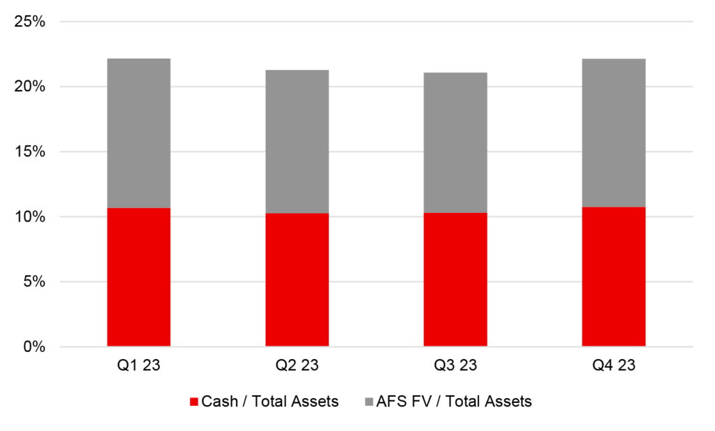 Exhibit 1: Cash and AFS securities comprise liquid assets