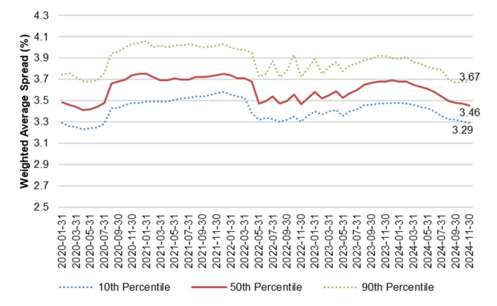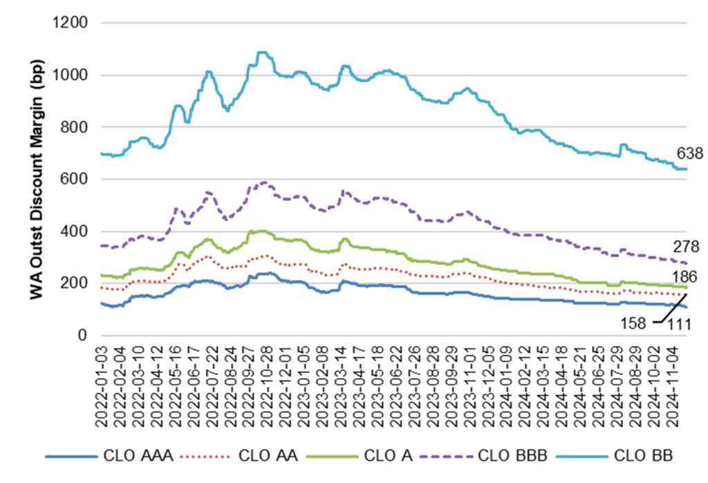 Note: Spreads to SOFR through 10/31/24 for the average class outstanding. May differ from new issue spreads.