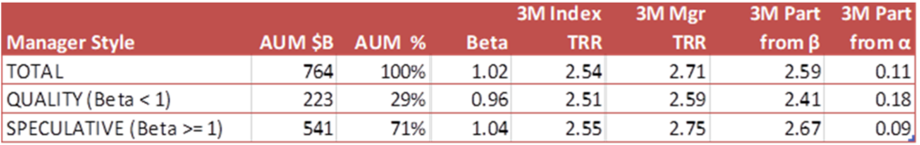 - MANAGERS: Quality managers top index by 18 bp, speculative peers by 9 bp