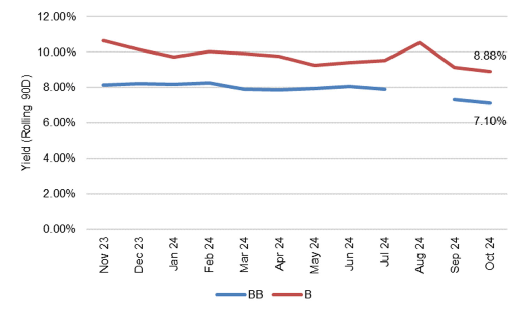 Note: Data shows 90-day rolling yield.
