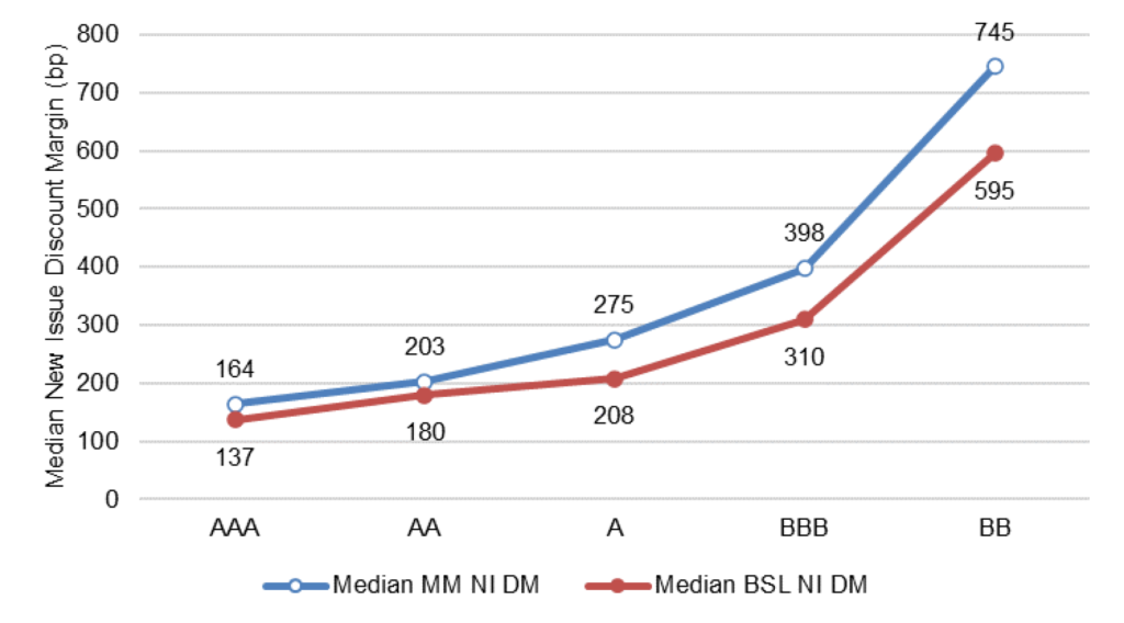 Note: NI DMs reflect markets throughout the month and can reflect deals priced weeks before, secondary DMs reflect markets at the end of the month. Spreads do not afford a same-point-in-time comparison.