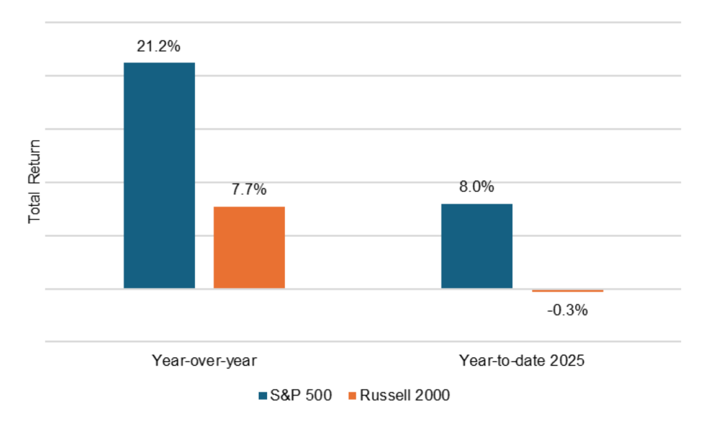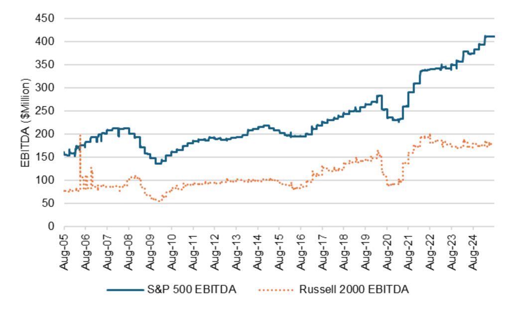 Exhibit 1: S&P 500 and Russell 2000 earnings have diverged since mid-2022