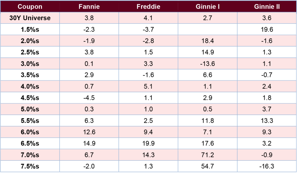 Projections using the daily prepayment data had pointed to somewhat softer increases in those premium coupons; prepayments came in a bit heavier than forecast over the last week of the month.