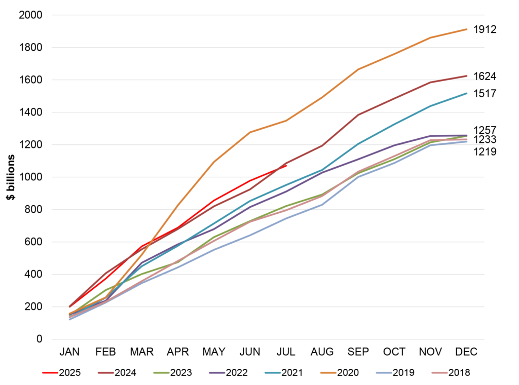 Exhibit 10. July issuance ($81.4 bn) falls well short of expectations ($102.5 bn)