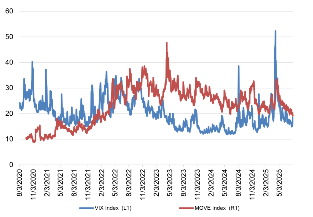 Exhibit 11. VIX and MOVE steadily push lower since May