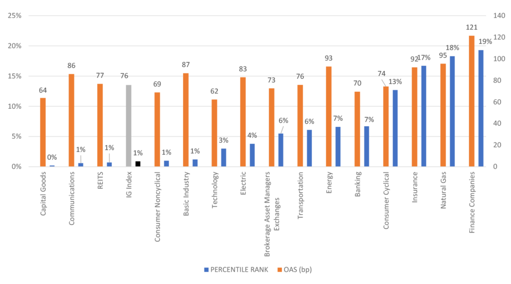 Note: the blue bars represent percentile rank (LHS), the orange bars represent OAS (RHS).