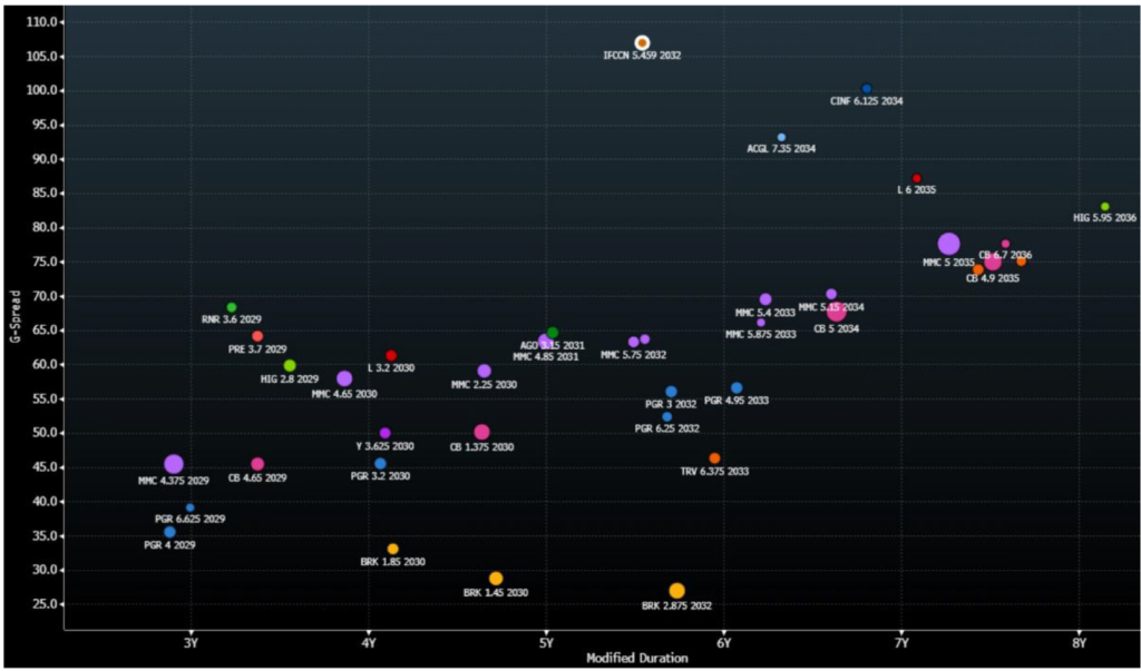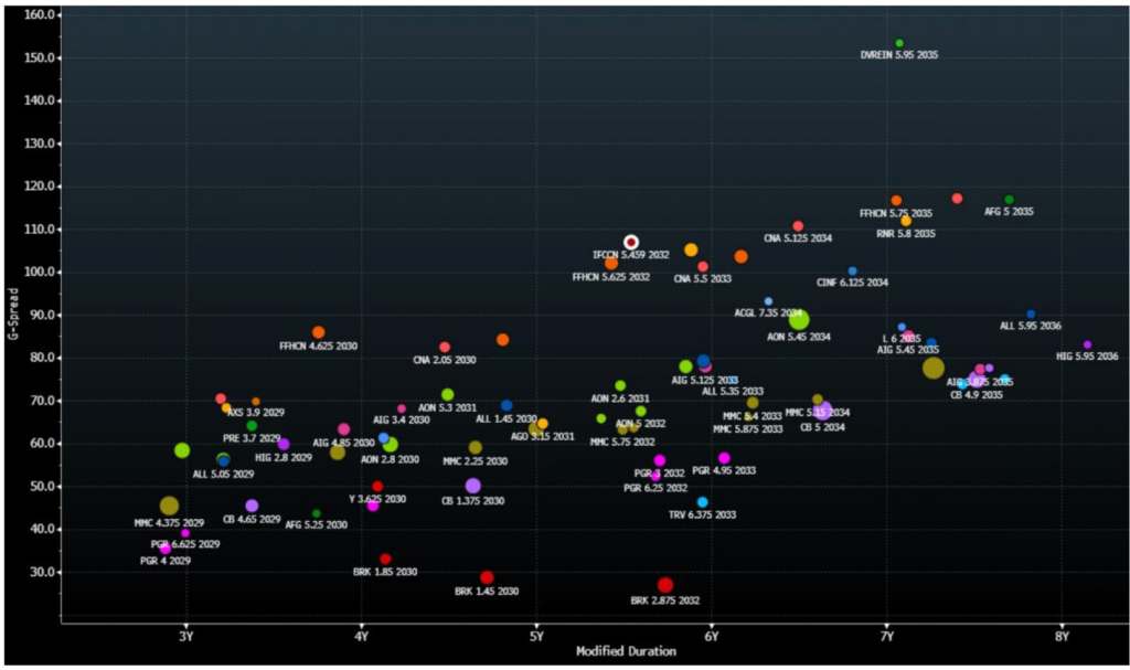 IFCCN is Canada’s top property and casualty insurer with comparable market position in their home country to bellwether public operators in the US, such as Allstate and Progressive. Moody’s upgraded the credit to ‘A3’ from ‘Baa1’ in October of 2024 and affirmed those ratings earlier this week. The insurance financial strength ratings of its insurance operating companies are ‘Aa3/AA-‘.