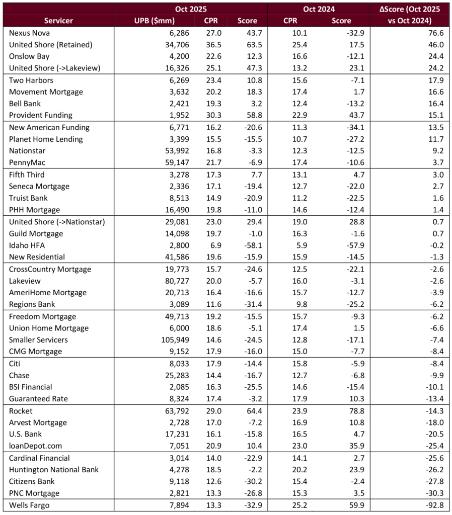 Exhibit 2. Comparing servicers prepayments in October 2025 to October 2024