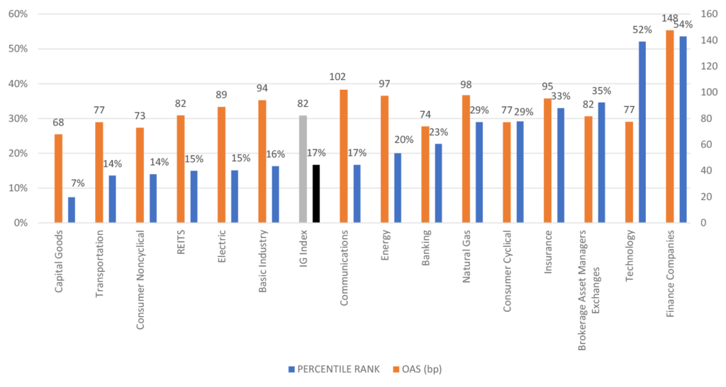 While electric utilities (besides natural gas) do not signal as being particularly cheap on their five-year trading ranges, the segment offers tremendous stability amidst shocks in credit and the opportunity for investors to add duration exposure in attractive parts of the curve, such as seasoned 20-year paper. Similarly, midstream/pipeline credits offer investors the opportunity to at least maintain market weight position to the energy sector while mitigating the potential risk for greater oil price volatility in 2026. In the current year, oil prices have remained largely rangebound between $80 and $60, but the outlook for the coming year is far more uncertain. Threats of oversupply and middling global demand growth have some targeting oil prices to dip well below $60 per barrel in the months ahead. Pipeline credits offer the least commodity exposure in the segment with long-term take-or-pay contracts protecting the operators from swings in energy prices. Investors appear reasonably well compensated for credit risk given the attractive protection afforded to this subgroup within the broader sector of the investment grade index.