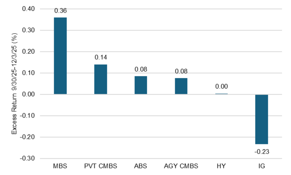 Exhibit 5: Except for MBS, excess return is flat or down since September 30