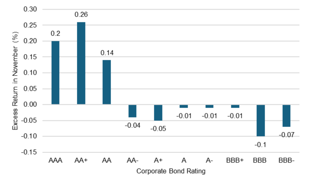 Exhibit 6: Higher-rated corporate bonds topped lower-rated in November