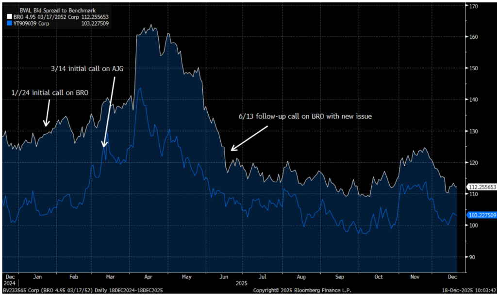 #1: Higher beta insurance brokers were a solid trade in 2025
