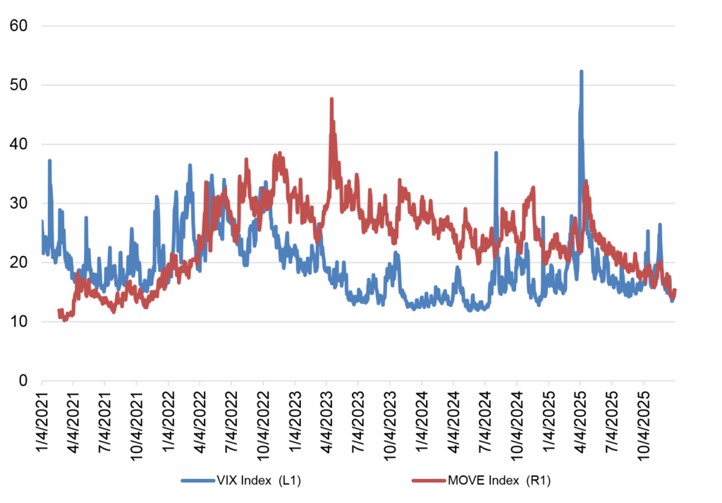Source: Bloomberg LP, Chicago Board Options Exchange Volatility Index, ICE BofA MOVE Index