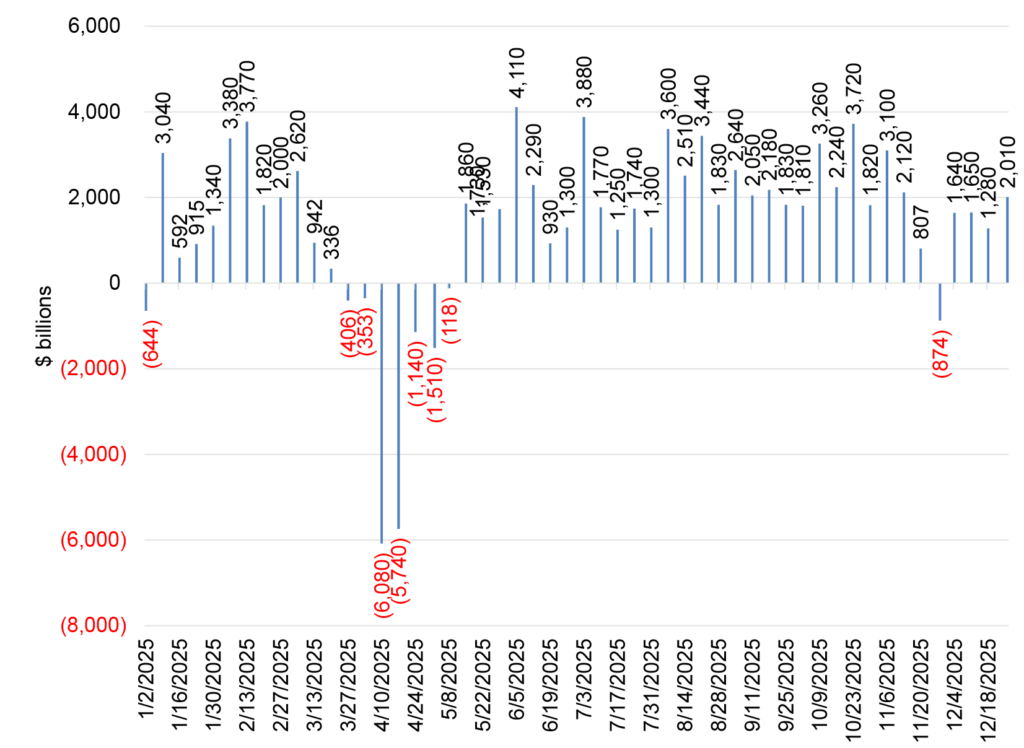 The investment grade corporate bond index moved modestly tighter in December to close 2025 just two basis points tighter than where spreads began the year. Early December new issue activity met expectations and helped cap the second largest annual volume on record. Mutual funds saw four straight weeks of flows into investment grade corporates. And investors once again embraced risk ahead of January’s seasonal new issue surge.