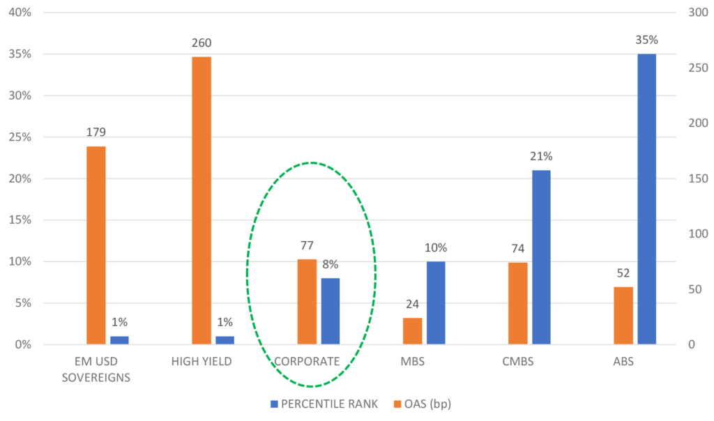 Exhibit 3: Broad fixed income sectors – current spread percentile ranks (vs five-year trading range)