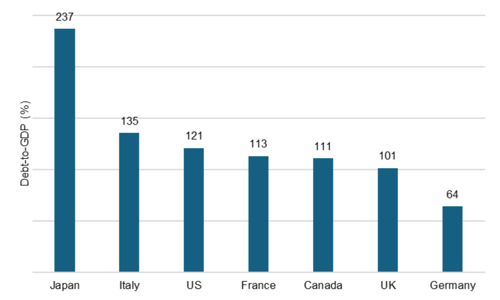 Exhibit 3: Japan has the highest debt-to-GDP among G7 economies