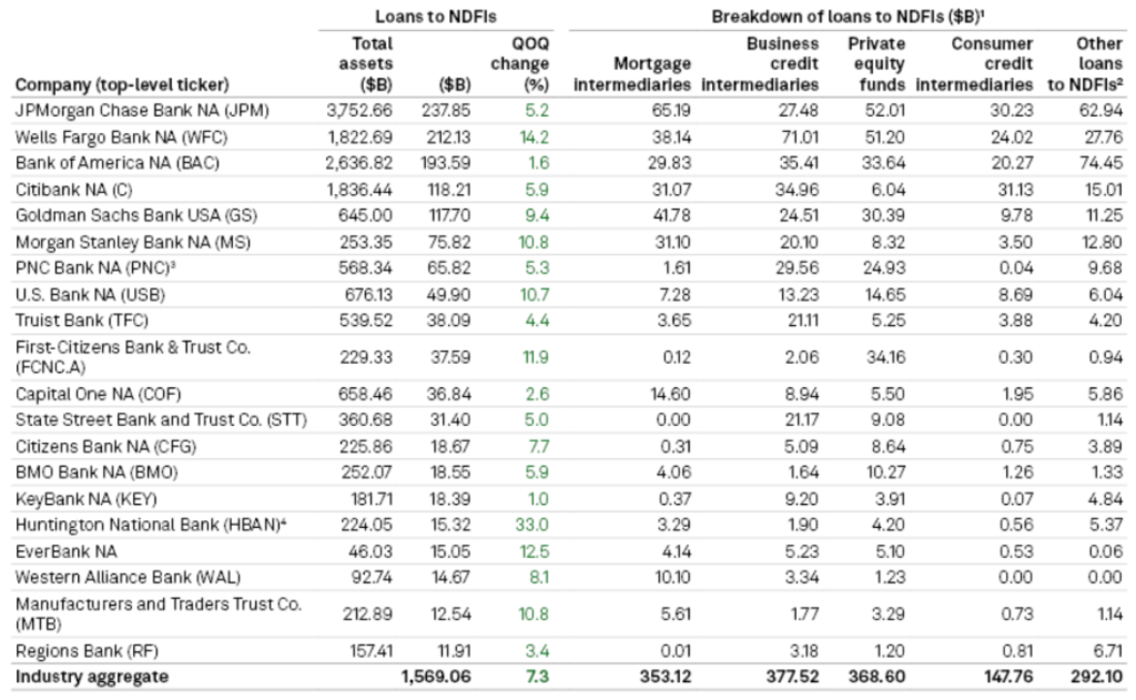 Notes: NDFI = Non-depository Financial Institution. 1. Includes institutions that reported NDFI balances greater than zero for quarter ended Dec 31, 2025. 2. Other loans include loans to holding companies, insurers, federal agencies, investment banks and broker/dealers, publicly listed investment funds, private capital funds, hedge funds, pensions, endowments, family offices, sovereign wealth funds, securitization vehicles, other investment firms, financial vehicles and advances to the bank’s own trust department.