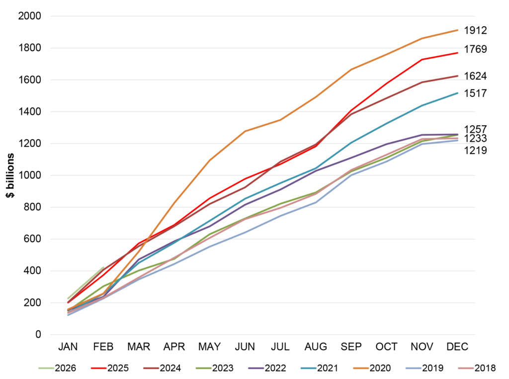 - Issuance: YTD gross issuance of $416B outpaces 2025 and 2024