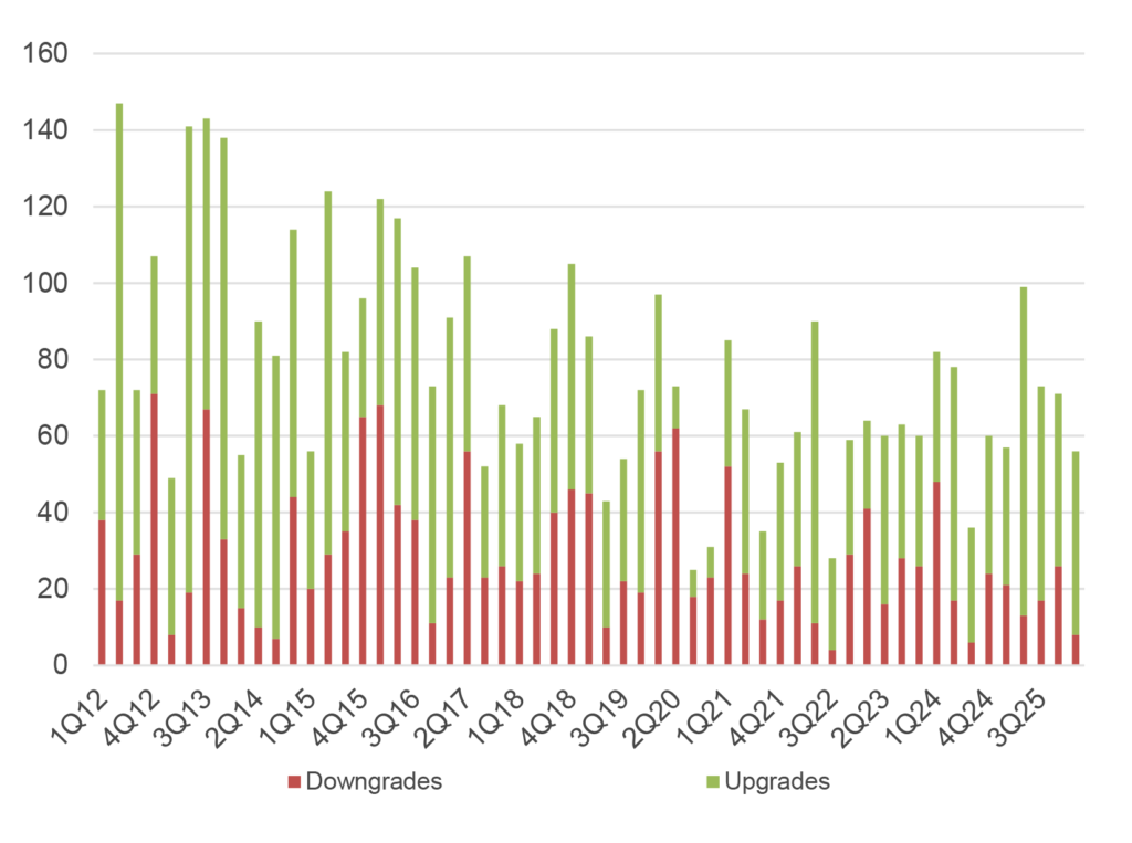 - Credit trends: Upgrades vastly outpace downgrades YTD