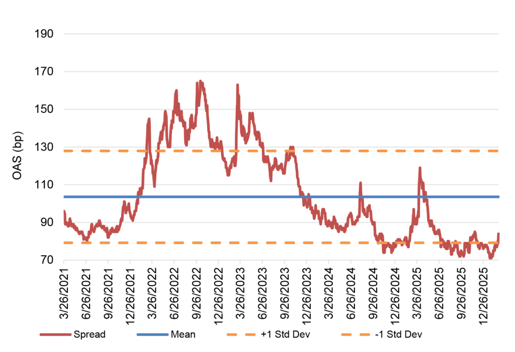 Exhibit 2. Percentile ranking of current OAS versus 5Y trading range