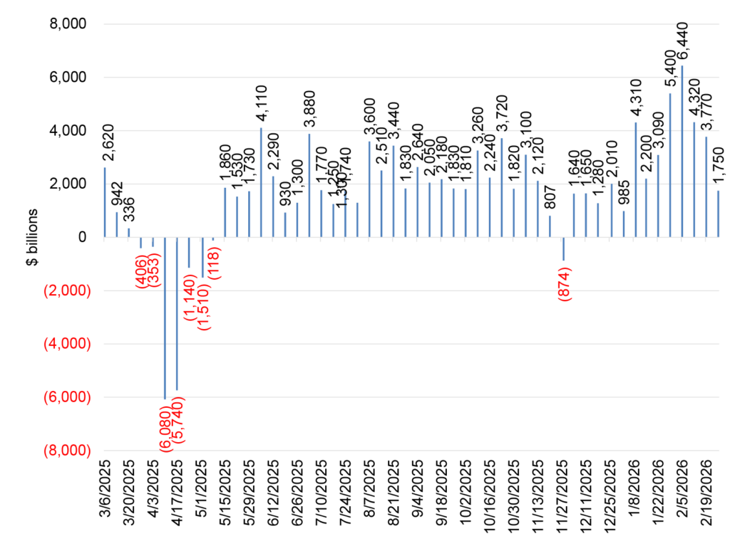 - Flow of funds: Mutual fund flows positive, with some big gains