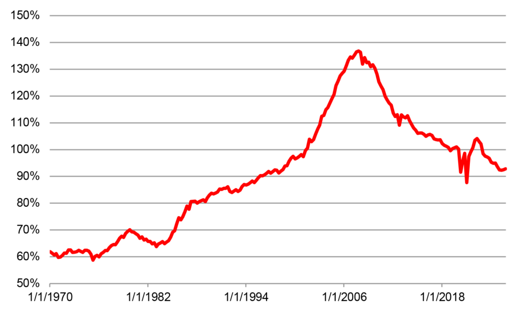 Exhibit 1: Household debt-to-GDP