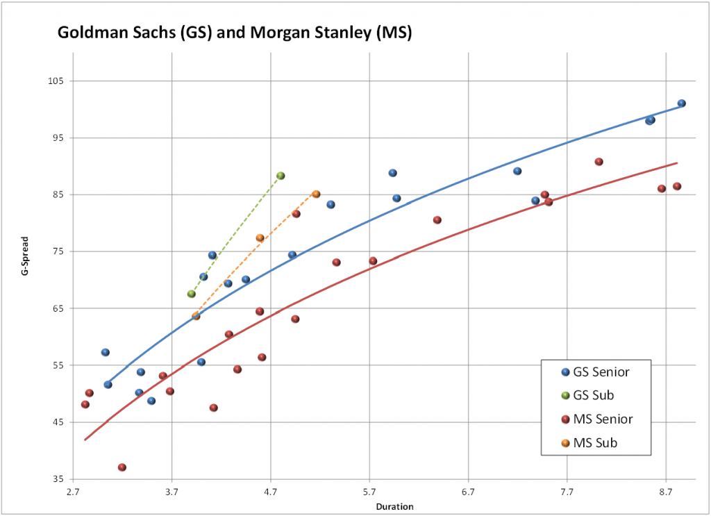 Exhibit 3. Spreads have gotten very tight between GS and MS, but we still prefer the spread pick-up in GS where available in the intermediate part of the curve