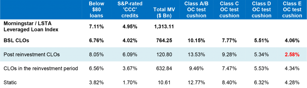Exhibit 1: The average CLO has a thin margin for absorbing more ‘CCC’