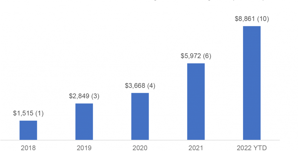 Notes: the number in the bracket reflect the number of managers who issued static CLO in a year. YTD data as of October 2022.